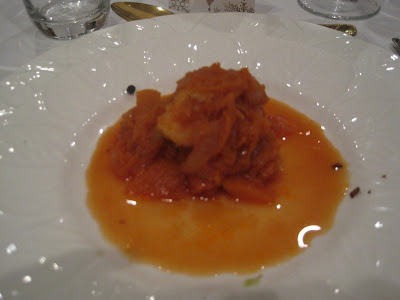 White fish with a tomato and carrot reduction. So delicious. I had some the day after (there is an abundance of leftovers!) and I could have happily eaten bowls of the carrots!